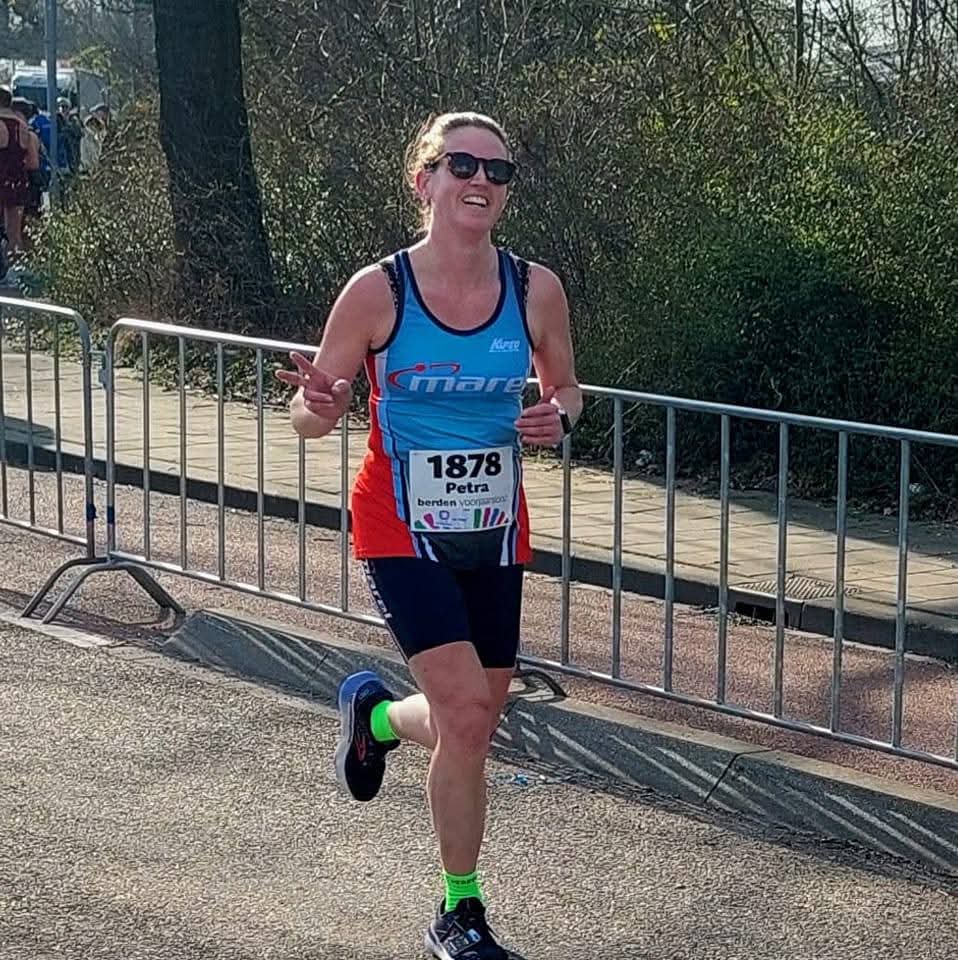 Ik ben Petra, 44 jaar en samen met Bob en onze dochters Lina en Yara woon ik in Venlo. In het dagelijks leven ben ik manufacturing planner bij JBT Marel in Boxmeer. Daarnaast geef ik wekelijks spinningles bij Body Movement in Tegelen en zet ik me in als vrijwilliger bij de verenigingen waar mijn dochters lid van zijn. Hardlopen doe ik sinds 2009, destijds met het doel om één keer aan de Venloop mee te doen, maar daar is het niet bij gebleven…